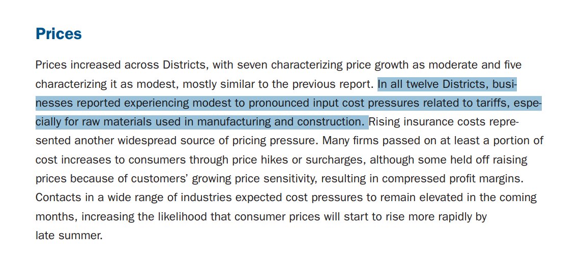 《褐皮书》指出,全美12个地区均报告价格上涨,企业普遍反映感受到关税相关的投入成本压力,尤其是制造业和建筑业使用的原材料。尽管一些企业因为消费者对价格日益敏感暂缓涨价,导致利润率受到压缩,但还是有很多企业通过提价或附加费将部分成本转嫁给消费者。