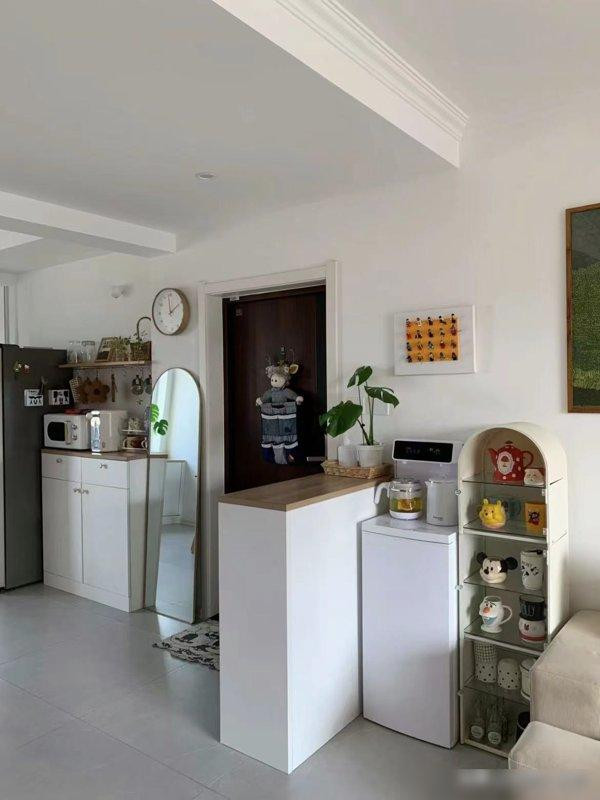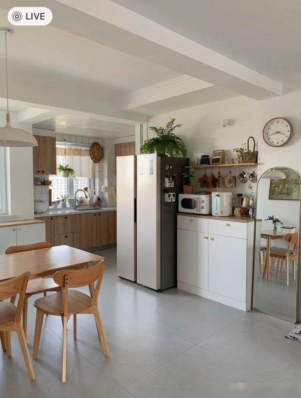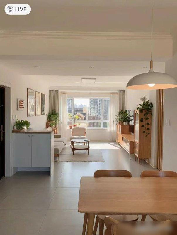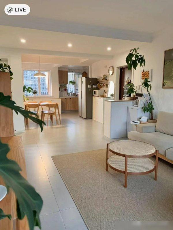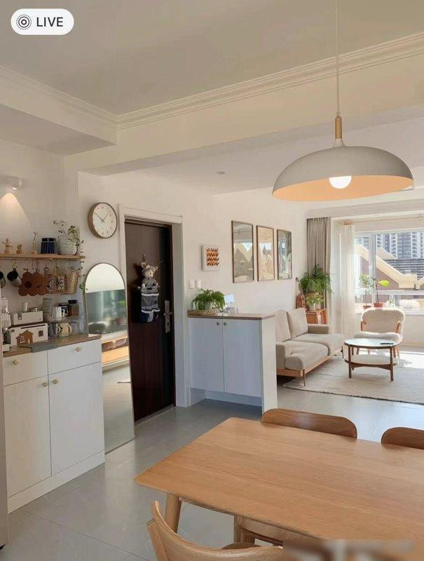 其实最戳人的是这个家的“干净”——不是“没人住的干净”,是“住着还能保持的干净”。大白墙不怕脏,擦一下就干净;石膏线没有复杂的造型,不会积灰;家具都是“好打理”的材质,木桌擦一下就行,布艺沙发套能拆洗。有没有觉得现在很多装修把“家”装成了“展览馆”,连个杯子都要摆成直线,而这个家的干净是“允许有生活痕迹”的——比如餐桌上的瓶瓶罐罐,沙发上的靠垫歪一点,反而更像“有人在住的家”。