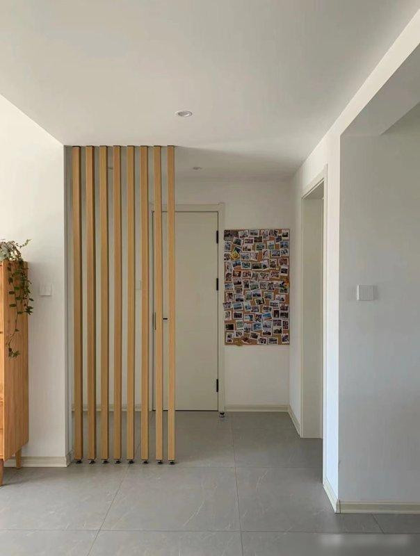 我之前装修时差点踩坑:设计师劝我做“轻奢风”电视墙,用大理石+金属条,我咬咬牙答应了,结果装完才发现——打扫的时候要擦金属条的指纹,大理石缝里积灰,而且看电视的时候,金属条反光刺眼睛。后来我狠下心拆了,换成大白墙+原木电视柜,瞬间觉得“呼吸都顺畅了”——原来“简单”不是“没设计”,是“选对了不瞎加”。就像这个家的入户镂空格条,不是厚重的实木屏风,是“透透气”的格纹,既遮住了卫生间门,又没挡玄关的光,有没有发现很多人家的屏风要么挡得黑乎乎,要么积灰难擦?这个格条刚好卡在“遮而不闷”的点上,连旁边的生活照墙都比买的装饰画更有温度——毕竟,那些照片里的笑容,比任何抽象画都更“戳心”。