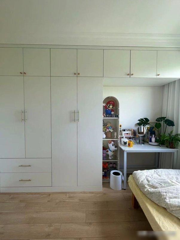 次卧的收纳柜做了整排,却留了靠窗的书桌,是不是比挤在角落的小桌子更愿意坐下来看书?
